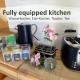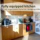 L’intérieur dévoile une pièce principale comprenant un coin salon avec canapé et télévision écran plat dotée des services de streaming. La chambre séparée propose un lit douillet tandis qu’une salle de bains privative équipée d’une baignoire offre tous les articles de toilette gratuits nécessaires au bien-être. La cuisine entièrement aménagée comprend plaques de cuisson, four, micro-ondes, lave-vaisselle et réfrigérateur ainsi qu’un coin cuisine fonctionnel avec machine à café et bouilloire électrique.