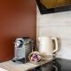 W apartamencie do dyspozycji gości jest całkowicie wyposażona kuchnia zawierająca lodówkę, piekarnik, zmywarkę oraz ekspres do kawy wraz z zestawem do parzenia kawy i herbaty. Pokój wyposażono również w pralkę i suszarkę bębnową. Łazienka posiada wannę ze słuchawką prysznicową oraz suszarkę do włosów. Dodatkowo przewidziano ręczniki i pościel oraz urządzenia takie jak żelazko ze sprzętem do prasowania.